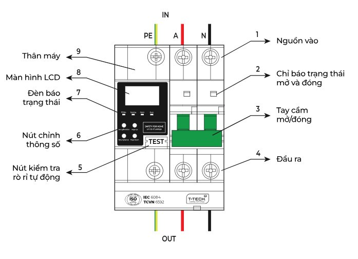 | Dòng điện mức: | 63A (model TTE63-1P), 100A (model TTE100-1P) |